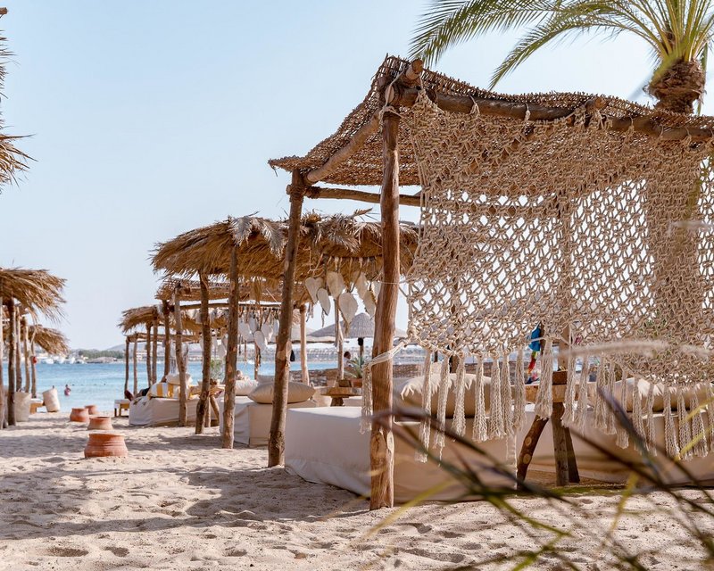 - plage de sable : en pente douce, fait partie du complexe, séparé du complexe par une promenade, parasols, transats