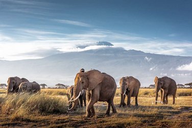 5ᴱ JOUR: Parc national du Lac Nakuru–Parc national d'Amboseli. Vous quitterez la vallée du Rift tôt le matin pour rejoindre le parc national d’Amboseli. Déjeuner pique-nique en route. L’après-midi, découverte des caractéristiques de ce petit parc lors d'un safari. Qui ne connaît pas le cliché d’un troupeau d’éléphants devant le sommet enneigé du Kilimandjaro? Nuitée bronze Ol Tukai Lodge ou sim. (PdDS), silver Kibo Safari Camp ou sim. (PdDS)