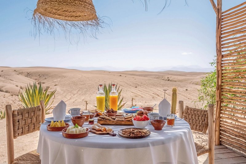 - 46-50 m², tente, vue sur le désert, séjour séparé, bureau, lit double (king-size), 1 salle de bain, douche, WC, sèche-cheveux, plancher en bois, climatisation, chauffage, ventilateur, mini réfrigérateur, coffre-fort, bouilloire, café/thé, terrasse (meublé), articles de bain de haute qualité, à l'arrivée en chambre petits gâteaux