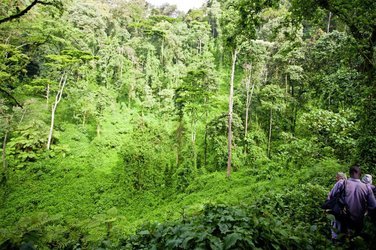 2ᴱ JOUR: Bwindi. (± 13 km/ 5 heures). Aujourd'hui, vous traversez le parc national de Bwindi à pied. Pendant la randonnée du nord au sud, vous n'avez besoin que de votre sac à dos, le reste de vos bagages sera transporté dans le véhicule. Après le petit-déjeuner, vous roulerez avec votre guide jusqu'au point de départ de l'Ivy River Trail. Les sentiers traversent la région vallonnée. Vous traverserez non seulement la forêt mais aussi les champs et d'innombrables villages. L'emplacement près de l'équateur fait que tout est vert toute l'année - cette couleur combinée avec la terre rouge et le ciel bleu crée un tableau particulièrement charmant. Sur le chemin, vous rencontrerez de nombreux habitants qui transportent leurs marchandises du village à la ville, en particulier les jours de marché. Le sentiment de bonheur est indescriptible quand vous entendez les appels de toutes parts et les éclats de rire des enfants. La faune et la flore uniques sont très variées et votre guide vous dira tout ce qu'il faut savoir. Avec un peu de chance, vous croiserez aussi des singes, des phacochères et des antilopes. Même les amoureux des oiseaux y trouveront leur compte et les papillons scintillants de toutes les couleurs vous accompagneront sur votre chemin. Après environ 5 heures, vous atteignez la crête de Nteko, où votre chauffeur vous attend déjà. Le trajet jusqu'à votre hébergement dure une trentaine de minute. Une fois arrivé au lodge, vous apprécierez le déjeuner et une boisson bien fraîche, puis vous pourrez enfin allonger vos jambes. Nuitée silver Nkuringo Lodge ou sim. (PddS), gold Clouds Mountain Gorilla Lodge ou sim. (PdDS)