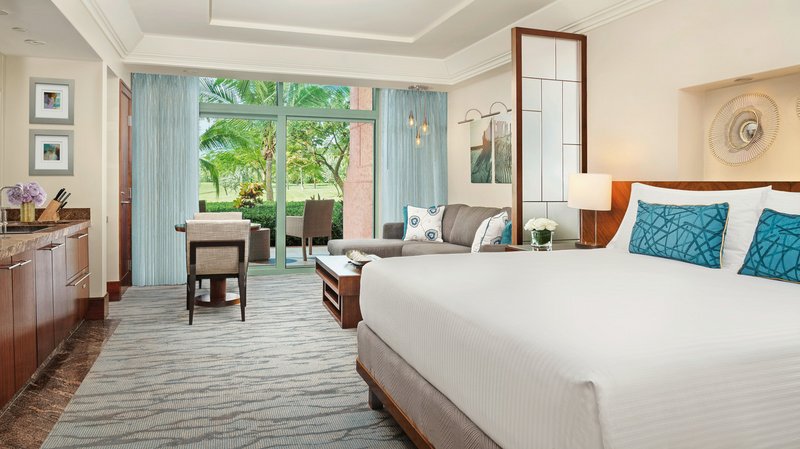 - 91-100 m², suite, vue sur la mer, salon/chambre à coucher combinés, douche ou baignoire, WC, sèche-cheveux, climatisation, minibar, coffre-fort, planche à repasser, fer à repasser, TV, coin cuisine, coin repas, machine à café, café/thé, balcon