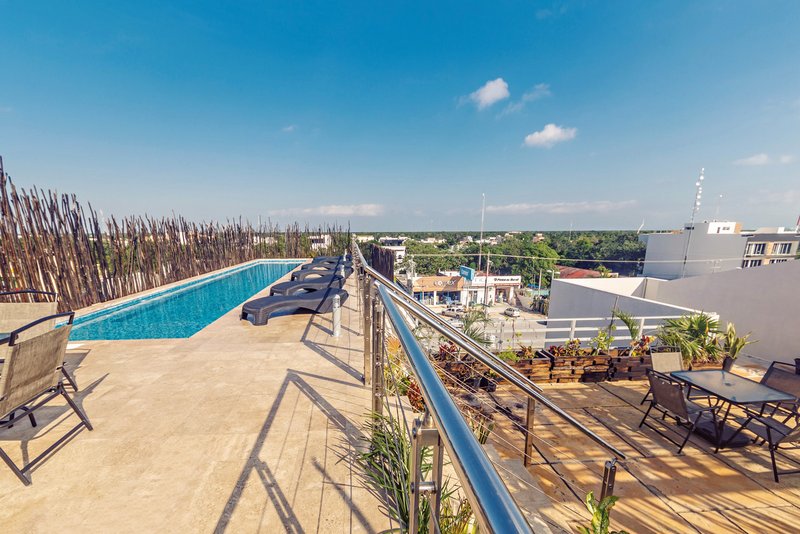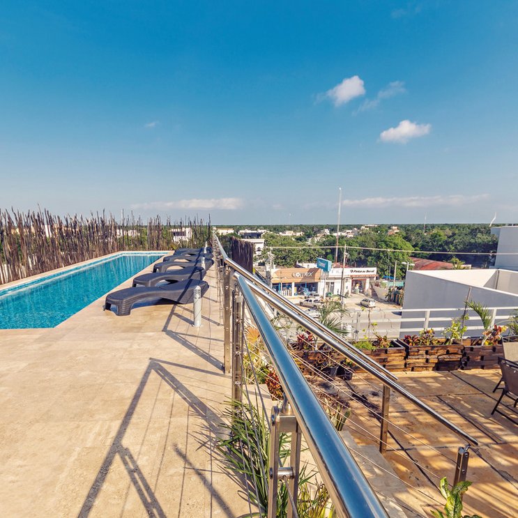 - 1 piscine : sur la terrasse sur le toit, transats