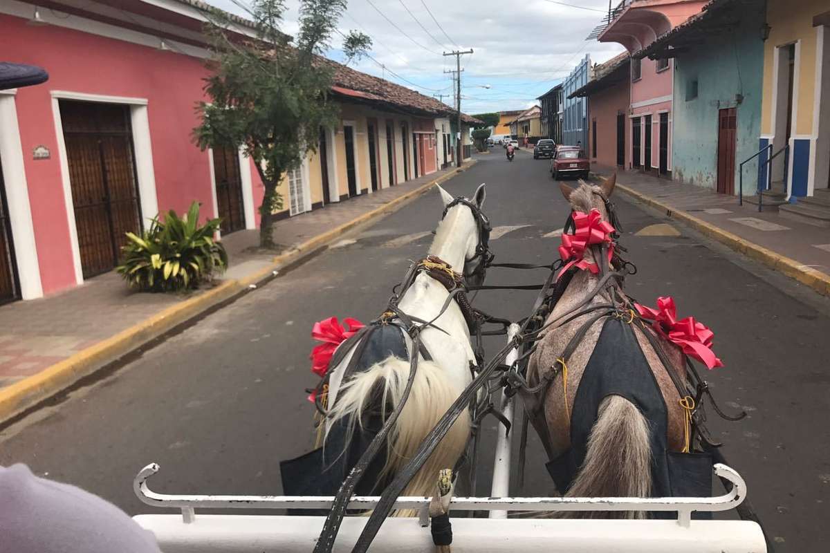 En route vers Grenade, nous vous recommandons de visiter le parc national de Masaya et le volcan actif du même nom. Depuis le bord du cratère, vous pourrez profiter d’une vue fascinante. Ensuite, vous continuerez votre route vers la charmante ville coloniale de Granada, où divers musées, galeries, églises et maisons rappellent le passé colonial (175 km). Le lendemain est à votre libre disposition pour découvrir les charmes de Granada au gré de vos envies. Promenez-vous dans les ruelles et faites une balade en calèche. Bien entendu, vous pouvez également profiter de cette journée pour faire un détour dans les environs. Découvrez la forêt humide de Mombacho ou piquez une tête dans les eaux limpides de la lagune d’Apoyo.