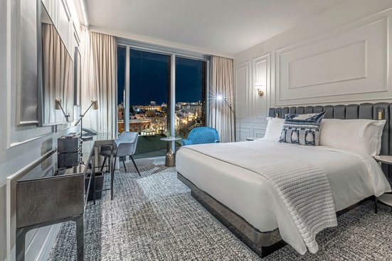 • 21-25 m², chambre double, bureau, lit double, douche, peignoir, sèche-cheveux, mini réfrigérateur, coffre-fort, TV, café/thé, fenêtre du sol au plafond