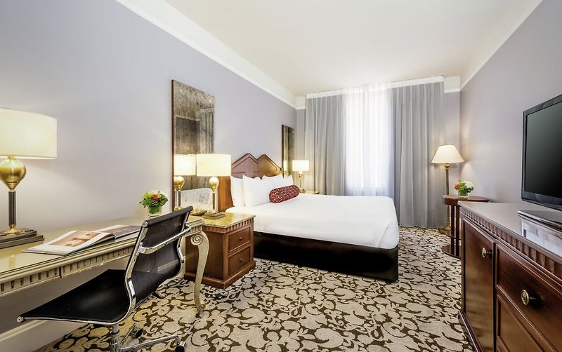 • 21-25 m², chambre double, vue sur la skyline, bureau, lits double (1 lit king-size ou 2 lits doubles), douche ou baignoire, WC, peignoir, chaussures de bain, sèche-cheveux, climatisation, mini réfrigérateur, coffre-fort, planche à repasser, fer à repasser, TV (smart-TV), bouilloire, café/thé, accès au Club-Lounge