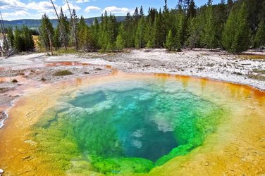 Levez-vous tôt et profitez de la journée au parc national de Yellowstone (patrimoine naturel mondial de l'UNESCO). En raison de sa situation au-dessus de la chambre magmatique du volcan Yellowstone, la région compte environ 10 000 sources chaudes et 300 geysers. Le parc réunit les attractions les plus diverses, comme par exemple le geyser Old Faithful, qui crache régulièrement son jet d'eau à des intervalles de 60 à 90 minutes. Dans la zone de retraite du parc, on trouve des bisons et des wapitis. Dans les régions plus basses, on trouve des cerfs mulets, des pumas et des lynx. Dans l'arrière-pays, vous aurez peut-être la chance d'apercevoir des loups, des coyotes et des grizzlis.