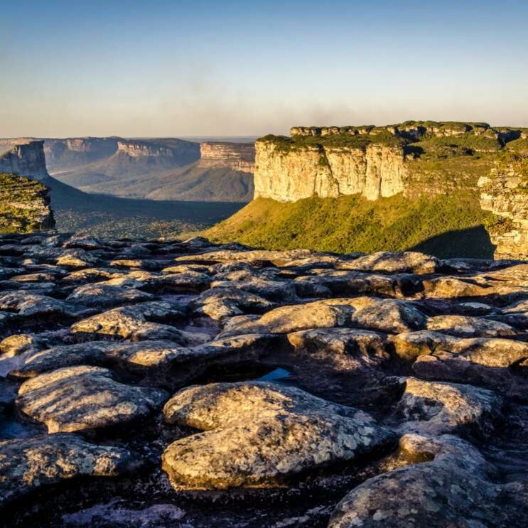 Une journée riche en moments forts vous attend aujourd’hui. Une petite randonnée vous mène jusqu’à la cascade de la «fontaine du diable». Après une baignade rafraîchissante, continuation jusqu’à la grotte de stalactites de Lapa Doce, dans laquelle vous pouvez voir des formations rocheuses uniques. À la fazenda da Pratinha, il est possible de se baigner dans l’eau cristalline de la rivière ou de faire du snorkeling. En fin d’après-midi, vous partez en randonnée sur la montage tabulaire Morro do Pai Inacio à 1120 m d’altitude, emblème de la Chapada Diamantina. Une vue magnifique sur les sommets et les vallées environnantes vous attend. Après avoir assisté au splendide spectacle du coucher du soleil, retour à Lençois.