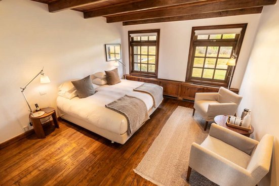 Infrastructure8 chambres Standard et 2 suites avec lits kingsize, meublées individuellement avec beaucoup de bois et de couleurs locales. Le salon confortable avec cheminée, la salle à manger et le bar complètent l’infrastructure.