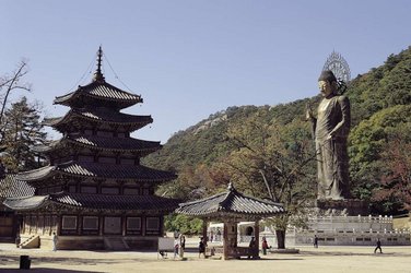 Aujourd’hui, le voyage se poursuit à travers la région centrale de la péninsule coréenne jusqu'au parc national de Songnisan. C'est ici que se trouve le vénérable temple Beopjusa avec sa statue de Bouddha en bronze de 33 mètres de haut. Continuation vers Daegu.