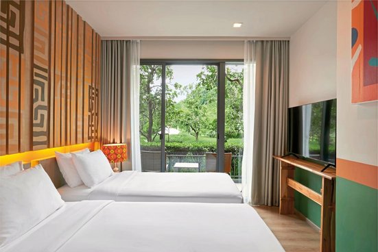 Motifs tribaux et animaux: ce qui pourrait également se présenter en Afrique, c’est la Thaïlande sous son meilleur jour. Au milieu de la forêt tropicale humide de Khao Yais, cette oasis inspirée par la nature séduit par son confort et son confort.