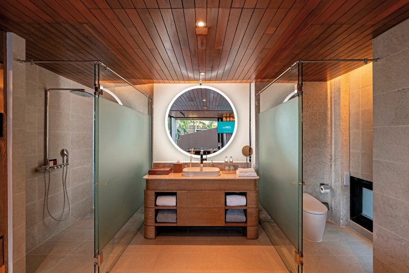 - 91-100 m², suite, situation de la plage, 1 chambre à coucher séparée, salon/chambre à coucher combinés, douche, baignoire, peignoir, chaussures de bain, sèche-cheveux, climatisation, minibar, remplissage quotidien, eau minérale, bière, jus, coffre-fort, TV, machine à café, café/thé, terrasse, piscine privée