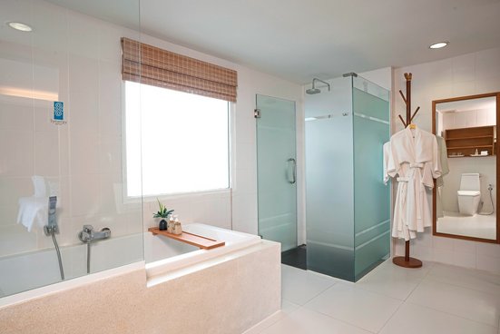 - 26-30 m², villa, douche, baignoire, WC, sèche-cheveux, climatisation, minibar payant, coffre-fort, TV (écran plat), café/thé, terrasse