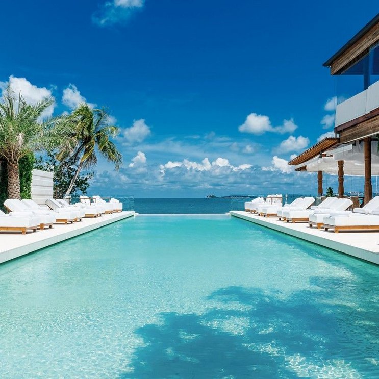 - 1 piscine : parasols, transats, matelas de chaise longue, serviette de bain