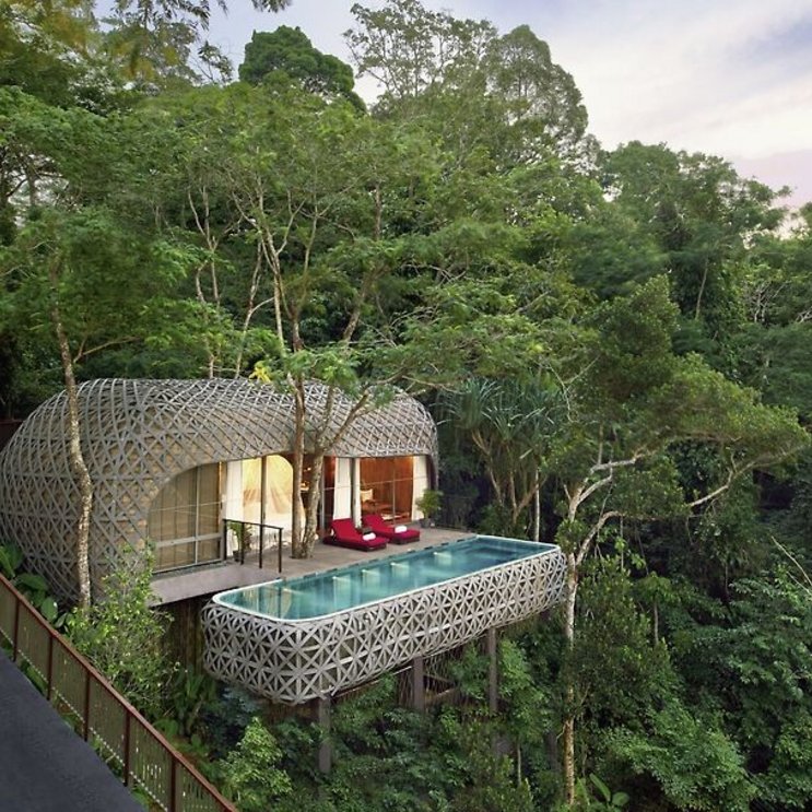 - Niché dans la forêt tropicale en pente