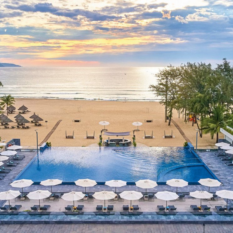 Souhaitez-vous combiner vacances à la plage et excursion culturelle ? Alors cette maison est parfaite pour vous. Le complexe balnéaire est situé directement sur la plage de Danang. En même temps, 3 sites du patrimoine mondial de l’UNESCO sont facilement accessibles.