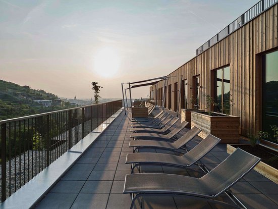 - 21-25 m², chambre double, Draps, serviettes et matelas 100% coton bio, douche ou baignoire, peignoir, sèche-cheveux, minibar payant, coffre-fort, TV, Wi-Fi, balcon ou terrasse, articles de bain de haute qualité