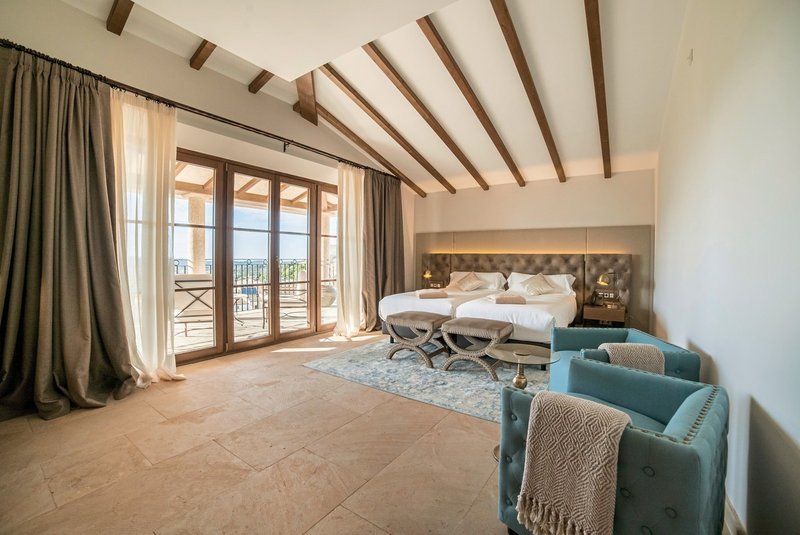 - 46-50 m², chambre double, superior, coin salon, lits jumeaux (king-size), douche ou baignoire, peignoir, chaussures de bain, sèche-cheveux, minibar payant, coffre-fort, TV (TV par satellite, écran plat), Wi-Fi, machine à espresso, balcon ou terrasse (meublé), articles de bain de haute qualité, accès gratuit au spa/à l'espace bien-être, serviette de piscine, à l'arrivée en chambre eau