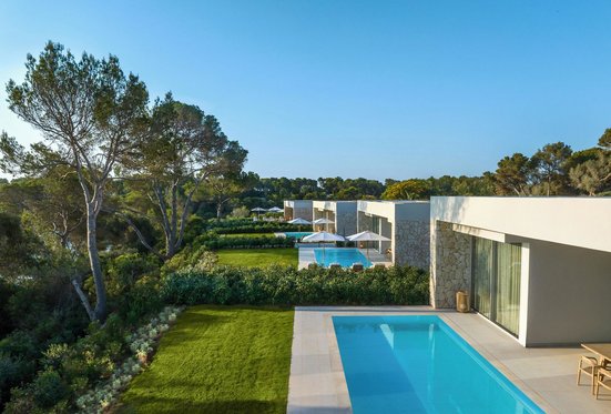 - 41-45 m², Junior Suite, standard, séjour/chambre à coucher optiquement séparés, douche, baignoire, peignoir, chaussures de bain, sèche-cheveux, climatisation, chauffage, minibar, remplissage régulièrement, coffre-fort, 1 TV (TV par satellite, smart-TV), Wi-Fi, bouilloire, machine à espresso, jardin, terrasse (meublé), service en chambre 24h/24, choix d’oreillers, articles de bain de haute qualité, fenêtre du sol au plafond