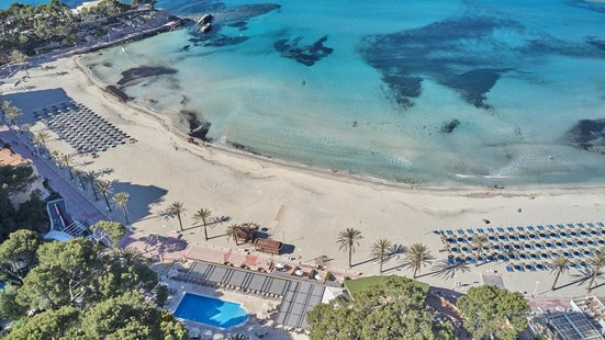 - plage de sable : en pente douce, séparé du complexe par une promenade, parasols (payant), transats (payant)