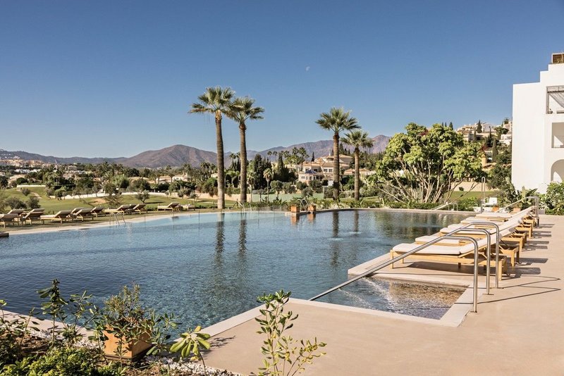 - 51-60 m², suite, vue sur le terrain de golf, vue sur la piscine, Draps, serviettes et matelas 100% coton bio, chambre à coucher séparée, coin salon, 1 salle de bain, baignoire, douche à effet de pluie, WC, peignoir, chaussures de bain, sèche-cheveux, climatisation, chauffage, minibar, coffre-fort, TV (TV par satellite, écran plat, smart-TV), Wi-Fi, bouilloire, machine à café, terrasse (meublé), articles de bain de haute qualité