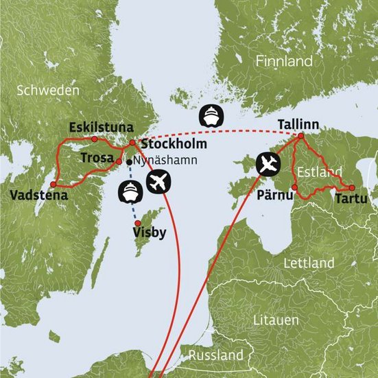 Aujourd'hui, c'est l'heure des adieux à la Suède : trajet confortable jusqu'au port et embarquement sur le ferry pour Tallinn. Nuitée à bord.