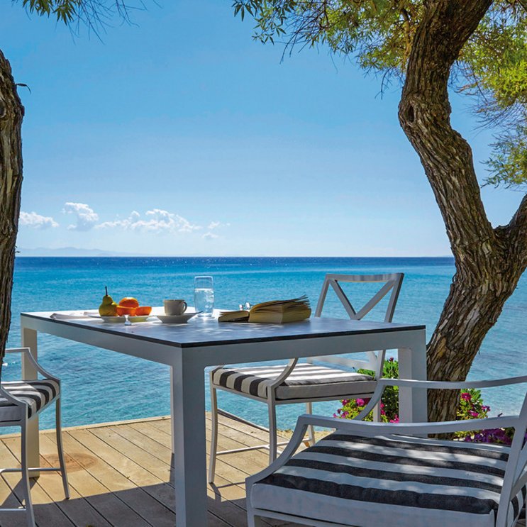 Cet hôtel-boutique populaire depuis des années se trouve directement sur la plage de sable sous les palmiers. Au-dessus, le village d’Afitos repose sur une colline. Promenez-vous dans le centre ancien du village, le long des jolies maisons traditionnelles en pierre à la recherche du motif photo ultime.
