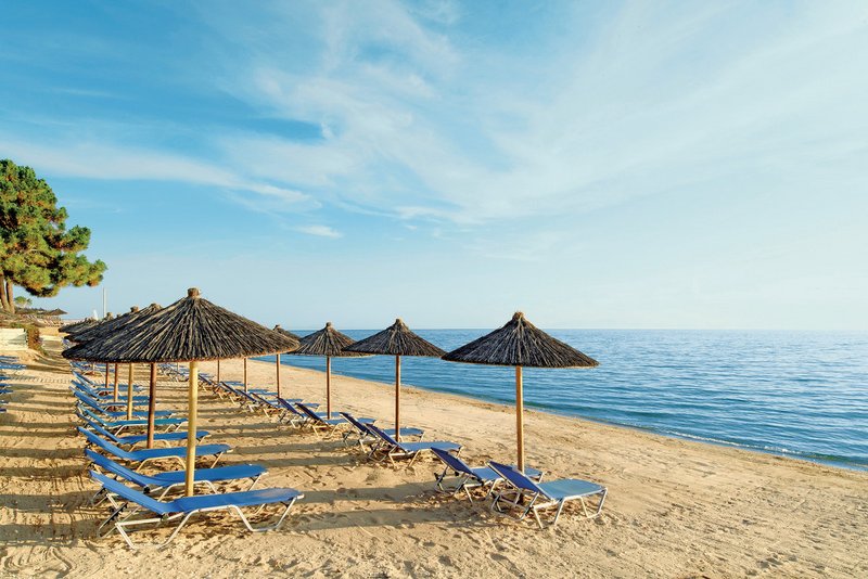 - plage de sable : en pente douce, fait partie du complexe, parasols, transats