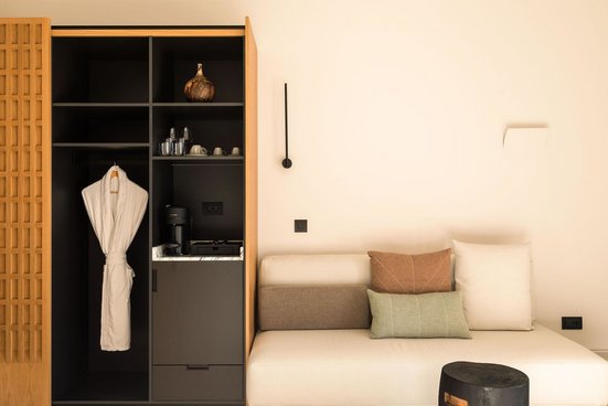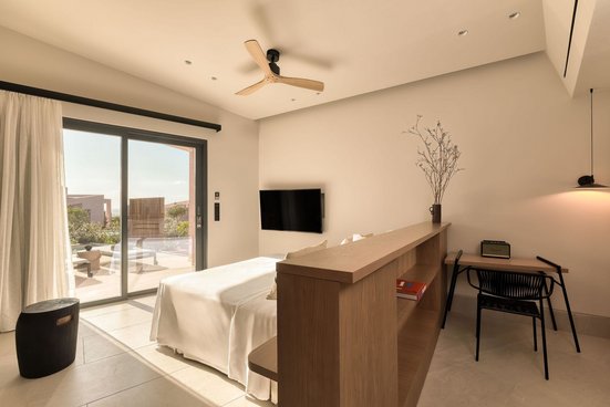 - 31-34 m², chambre double, vue sur la mer, douche de plain-pied, peignoir, chaussures de bain, sèche-cheveux, miroir cosmétique, carrelage, climatisation, minibar payant, mini réfrigérateur, coffre-fort, planche à repasser, fer à repasser, TV (TV par satellite, smart-TV), système audio, haut-parleur bluetooth, Wi-Fi, machine à café, café/thé, terrasse (meublé), piscine privée (chauffable), choix d’oreillers, articles de bain de haute qualité, service de couverture, à partir de 12 m² env.