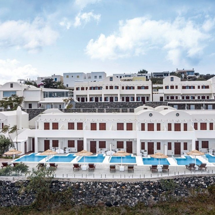 Situé à flanc de colline, cet hôtel moderne offre une vue sur la côte est pittoresque de Santorin, tandis que le centre-ville voisin regorge de boutiques et de restaurants.