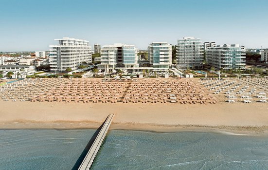 Cette résidence de luxe est un hommage à la splendeur et au flair de la côte adriatique italienne. Des architectes de renom ont conçu le bâtiment et l'intérieur, créant ainsi un hôtel de rêve aux allures de Miami au cœur de Jesolo !