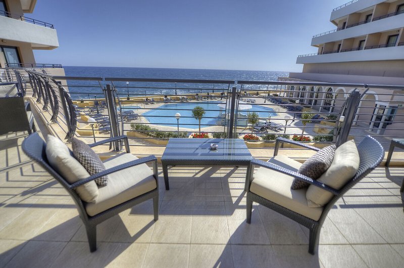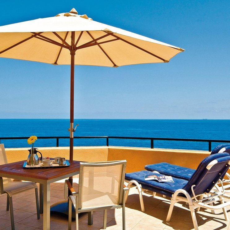 - 26-30 m², chambre double, vue sur la mer, vue sur la piscine (en partie), douche, baignoire, WC, peignoir, chaussures de bain, sèche-cheveux, climatisation, chauffage, minibar payant, coffre-fort, TV (TV par satellite), Wi-Fi, bouilloire, café/thé, balcon (meublé)