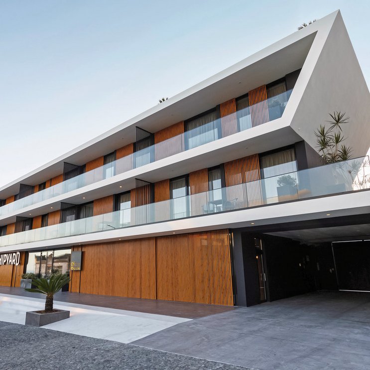 Hôtel moderne inspiré par le thème nautique de l’île avec de nombreux éléments en bois