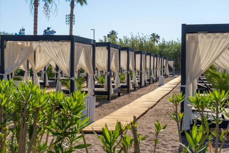 - 41-45 m², chambre double, Deluxe, douche, WC, peignoir, chaussures de bain, sèche-cheveux, miroir cosmétique, climatisation, minibar, remplissage régulièrement, coffre-fort, planche à repasser, fer à repasser, 1 TV (TV par satellite, écran plat, smart-TV), bouilloire, machine à café, café/thé, terrasse (meublé), accès direct à la piscine, piscine partagée