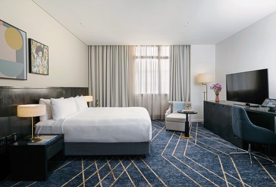 • 31-35 m², chambre double, lit double (king-size), douche, WC, sèche-cheveux, climatisation, minibar payant, coffre-fort, TV, Wi-Fi, machine à café