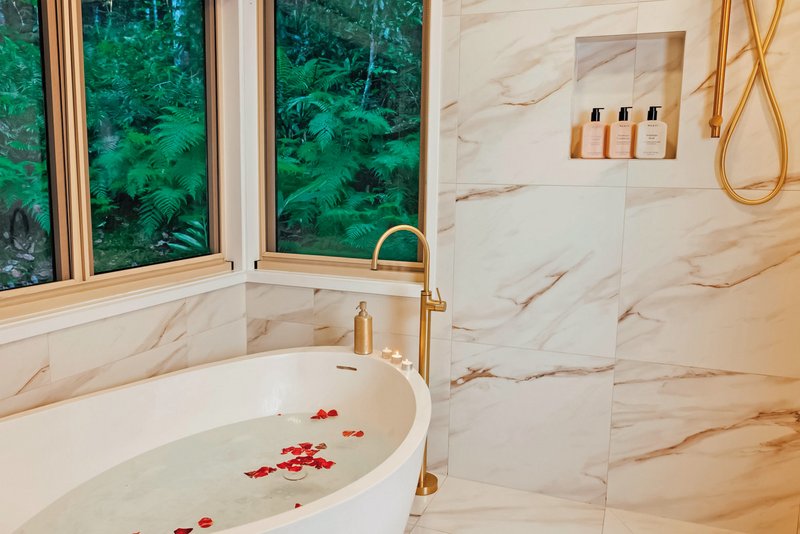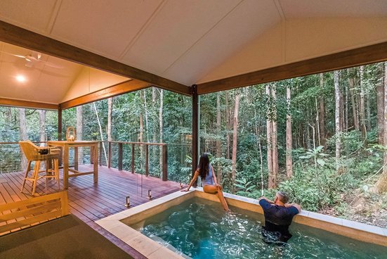 Bains spa privés et baignoires extérieures : détente avec vue sur la verdure – bien-être en toute intimité, accompagné par les sons de la nature