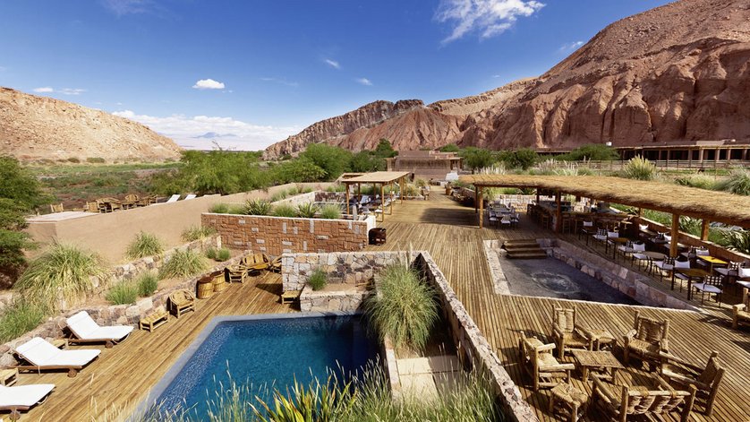 Alto Atacama Hotel & Spa : ce joli hôtel avec son architecture se niche à merveille dans le paysage désertique. Il est situé à trois kilomètres de San Pedro ; en particulier les six piscines sont idéales pour se détendre au courant de l’après-midi après avoir participé à l’une des nombreuses excursions proposées. Le prix de la nuitée comprend deux excursions d’une demi-journée ou une d’une journée complète et la pension complète.