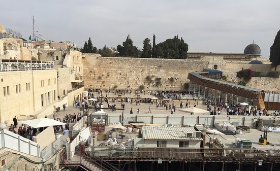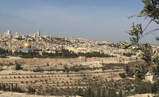Nous commençons notre tour sur le Mont des Oliviers, d'où l’on profite de la meilleure vue sur la vieille ville de Jérusalem et le Dôme du Rocher avec sa coupole dorée. À pied, l’on descend du Mont des Oliviers, en passant par un grand cimetière, jusqu'au jardin de Gethsémani avec ses oliviers centenaires, l’endroit où Jésus aurait prié avec ses disciples après la dernière Cène. Nous continuons jusqu'à la vieille ville de Jérusalem, située légèrement en surplomb sur le Mont du Temple. Avant d'arriver au Mur des Lamentations, nous devons passer un contrôle de sécurité comme à l'aéroport, mais bon, la sécurité passe avant tout. Jérusalem est une ville sainte pour trois religions mondiales et des gens de religions et de cultures différentes vivent, généralement en paix, les uns à côté des autres sur un tout petit territoire. On peut ressentir les différentes religions lors d'une promenade dans les quartiers chrétiens, arméniens, juifs et musulmans. Passant par la Via Dolorosa, nous arrivons enfin à l'église du Saint-Sépulcre. Épuisés, nous prenons un café dans un petit bar avant de retourner à Tel-Aviv en fin d'après-midi.