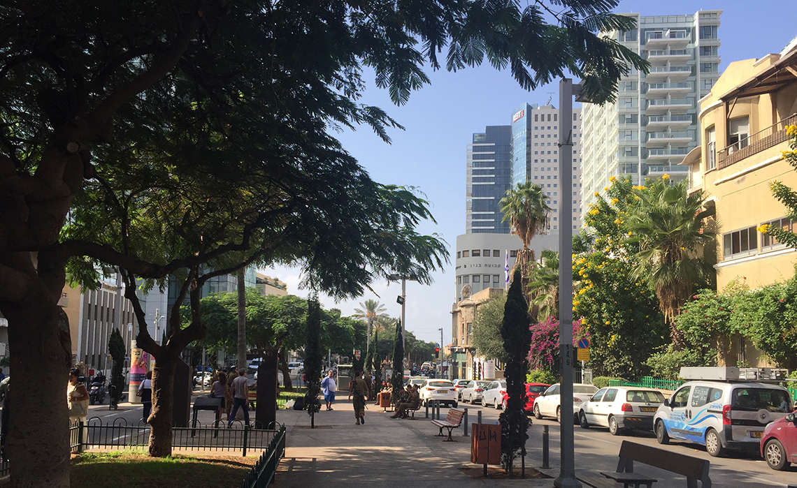 Après le déjeuner dans l'un des nombreux restaurants, nous continuons vers la « Ville blanche », construite dans le style Bauhaus dans les années 1930 par des Juifs allemands, ayant fui l'Allemagne après la prise du pouvoir par Hitler. Épuisés par le « sightseeing », nous retournons à notre hôtel sur la promenade au courant de l'après-midi et décidons de passer le reste de la journée sur la plage – et ce, en plein novembre.