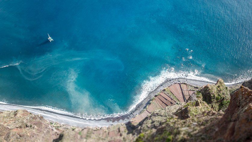 Nous marquons une pause dans le village de pêcheurs pittoresque Paul do Mar. Connu par les surfeurs comme étant le meilleur spot de surf de l’île, le village m’a charmée par son atmosphère apaisante. De ce côté également, nous suivons l’ancienne route côtière, qui nous réserve quelques surprises rocambolesques. Peu avant Ribeira Brava, une cascade jaillit d’une arête rocheuse en plein milieu de la route. Une autre curiosité est Cabo Girão, qui avec une hauteur de près de 560 mètres compte parmi les plus hautes falaises d’Europe. En regardant en bas, la vue est à la fois vertigineuse et impressionnante. Ces parties exposées sont elles aussi exploitées en terrasses.