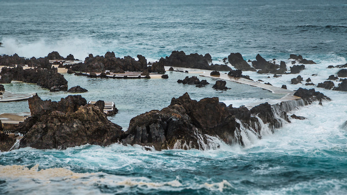Le panorama sauvage de côtes et de falaises se prolonge au loin, jusque dans le nord-ouest de l’île. À Porto Moniz, d’étranges falaises de lave sombres forment une piscine naturelle. Il est possible de se baigner dans les « Piscinas Naturais », à l’abri du déferlement des vagues. Le vent violent et les hautes vagues m’en ont toutefois dissuadée.