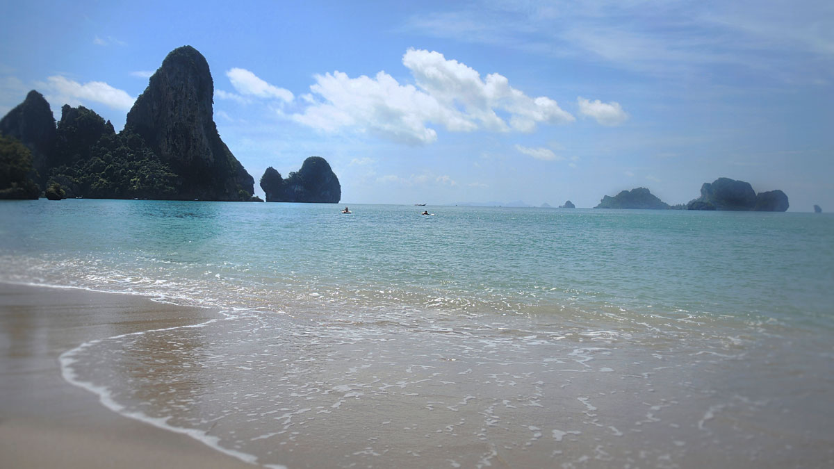 Ton Sai se trouve un peu au sud de Krabi sur la Thaïlande continentale, mais en raison de la jungle impénétrable il ne peut être atteint que par bateau de la station balnéaire d’Ao Nang. Seule une petite partie de la jungle sépare Ton Sai de Railley Beach, qui est louée dans de nombreux récits de voyages comme l’une des plus belles plages de Thaïlande. Malgré la proximité, les deux endroits ne pourraient pas être plus différents. Tandis qu’à Railley les touristes d’un jour et les complexes hôteliers prédominent, le rythme de vie à Ton Sai est tout autre. La plupart des hébergements sont simples et bon marché, seuls quelques bungalows sont climatisés. En revanche, des hamacs et des slacklines sont tendus entre les arbres et les sentiers de la jungle sont fermement entre les mains de clans de macaques voleurs. Avec un peu de chance, les observateurs attentifs peuvent apercevoir des iguanes de proportions préhistoriques, qui s’ébattent de préférence dans le lit du ruisseau. Ceux qui passent leurs vacances à Ton Sai veulent soit décélérer activement, soit faire de l’escalade.