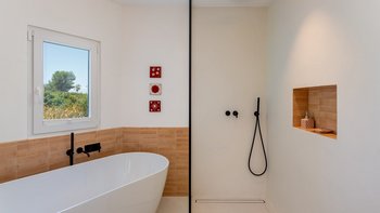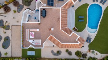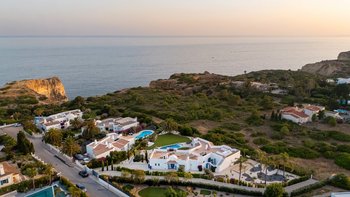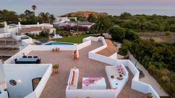 Treten Sie ein und entdecken Sie die geräumigen, lichtdurchfluteten Innenräume, in denen natürliche Materialien und beruhigende Farbtöne die Schönheit der umliegenden Landschaft hervorrufen. Deren Doppelinselküche der Villa und der angrenzende Essbereich fügen sich nahtlos in eine einladende Hauptlounge und ein intimeres Wohnzimmer ein, das sowohl Gemeinschafts- und auch Privaträume bietet. Vier Schlafzimmer mit eigenem Bad, die jeweils nach den Stränden der Region benannt sind (Praia Luz, Paraïso, Falesia, Rocha), sind individuell in beruhigenden Blau-, Türkis- und Ockertönen eingerichtet und bieten entweder Meer- oder Poolblick oder eine abgeschiedene Terrasse. Sorgfältig ausgewählte Möbel, hochwertige Bettwäsche und historische portugiesische Azulejos verleihen dem gesamten Gebäude einen Hauch von Tradition und Komfort und sorgen für ein gemütliches und dennoch anspruchsvolles Ambiente.