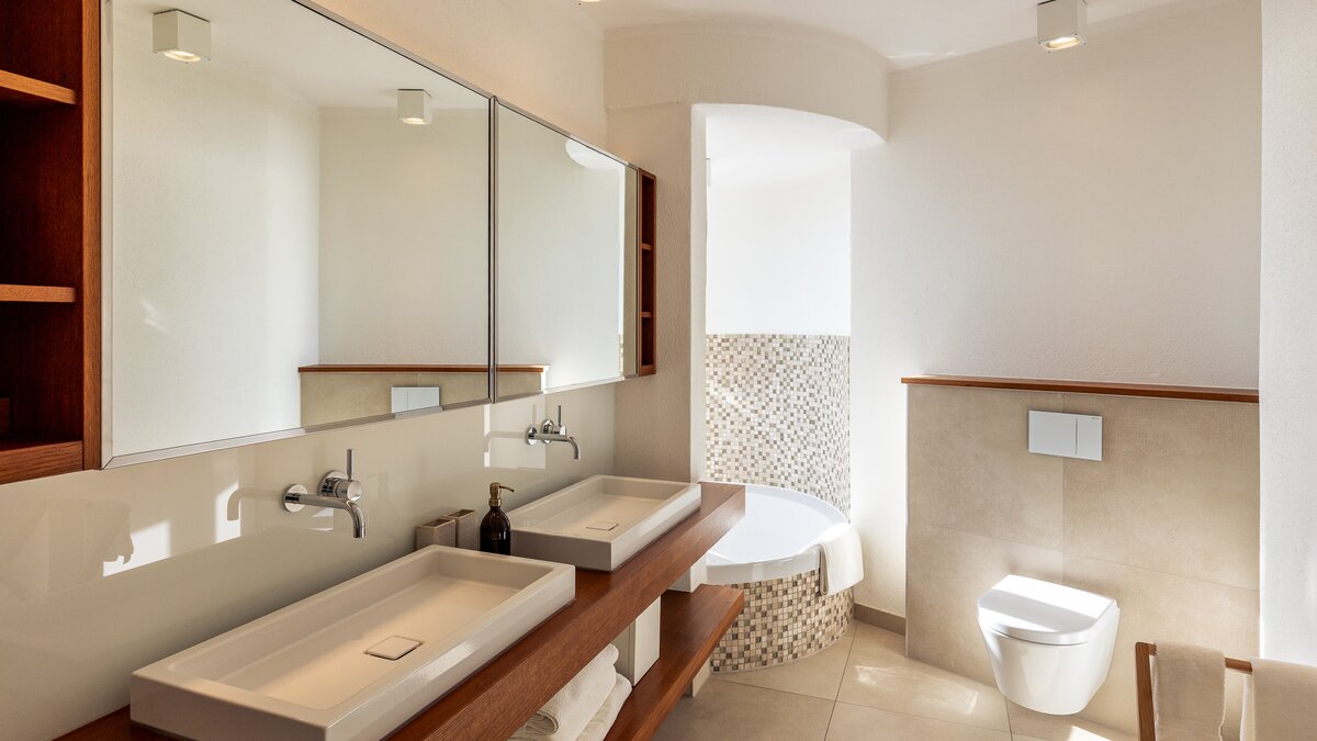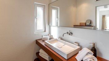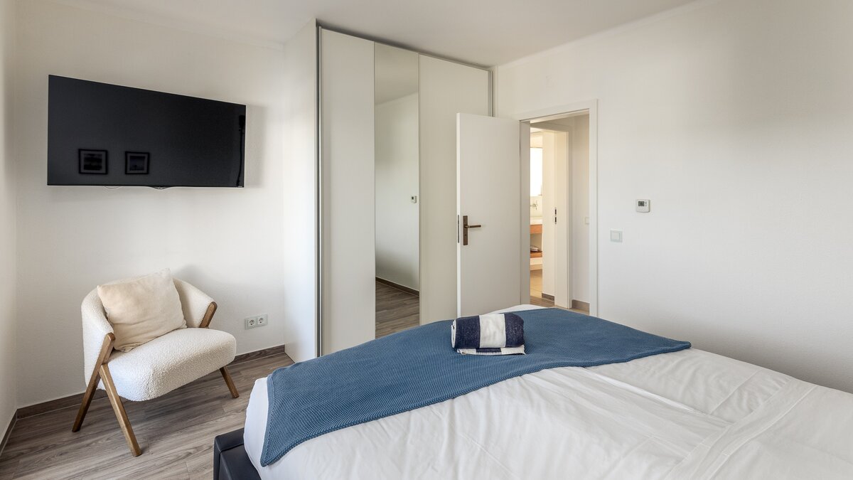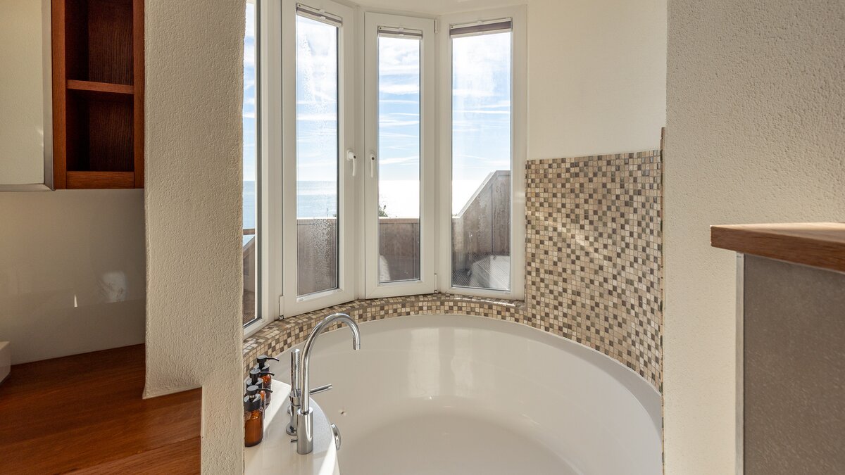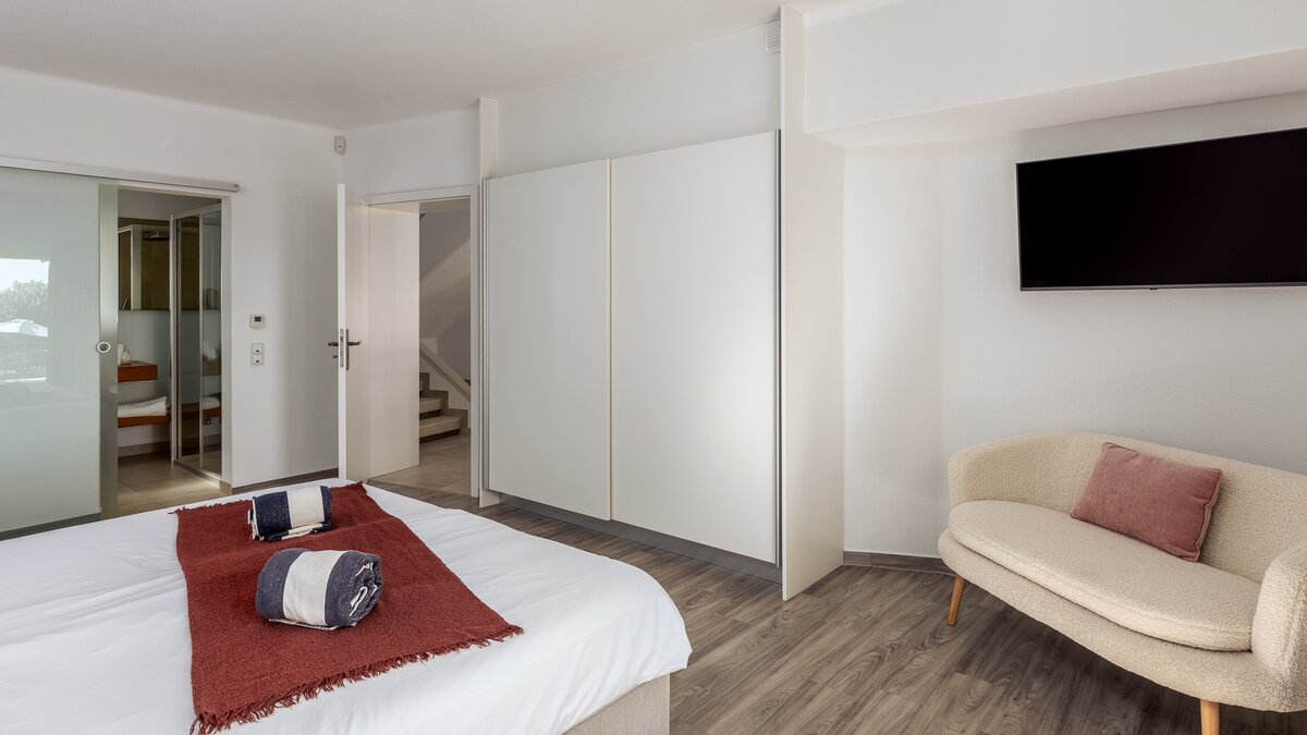 Im Obergeschoss befinden sich drei elegante Schlafzimmer, von denen jedes einen Panoramablick auf den Atlantik bietet. Besonders besonders ist die Master-Suite mit einem privaten Balkon ausgestattet, der sich perfekt für einen ruhigen Morgenkaffee oder den Sonnenuntergang eignet. Jedes Zimmer ist mit weicher Bettwäsche und stilvollem Dekor ausgestattet, während zwei Schlafzimmer mit eigenem Bad ausgestattet sind, das nach höchsten Standards ausgestattet ist.