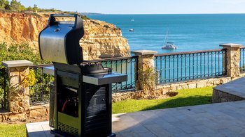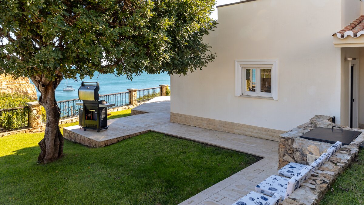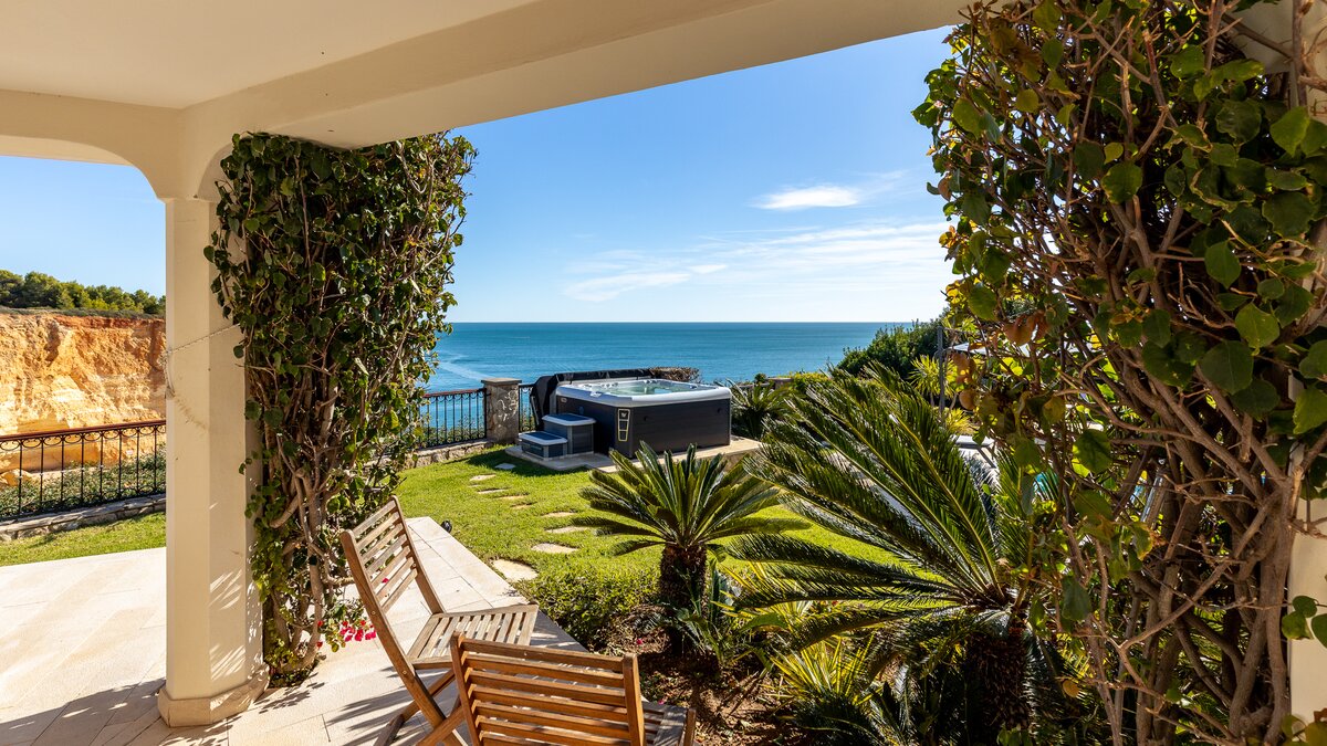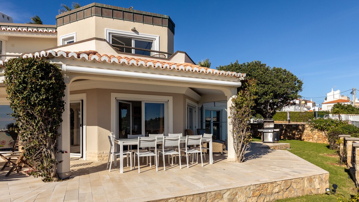 Der Außenbereich der Villa ist dort, wo sie wirklich glänzt. Der Infinity-Pool scheint mit dem Meer zu verschmelzen, während der Whirlpool der ideale Ort ist, um sich nach einem erlebnisreichen Tag an der Küste zu entspannen. Eine schattige Terrasse und ein eingebauter Grill machen das Leben im Freien unwiderstehlich, wobei der Atlantikhorizont eine faszinierende Kulisse bietet. Liegestühle und Landschaftsgärten runden das Bild des modernen Küstenluxus ab.