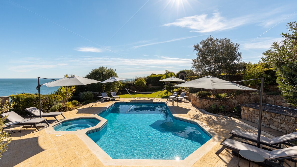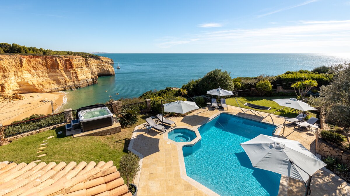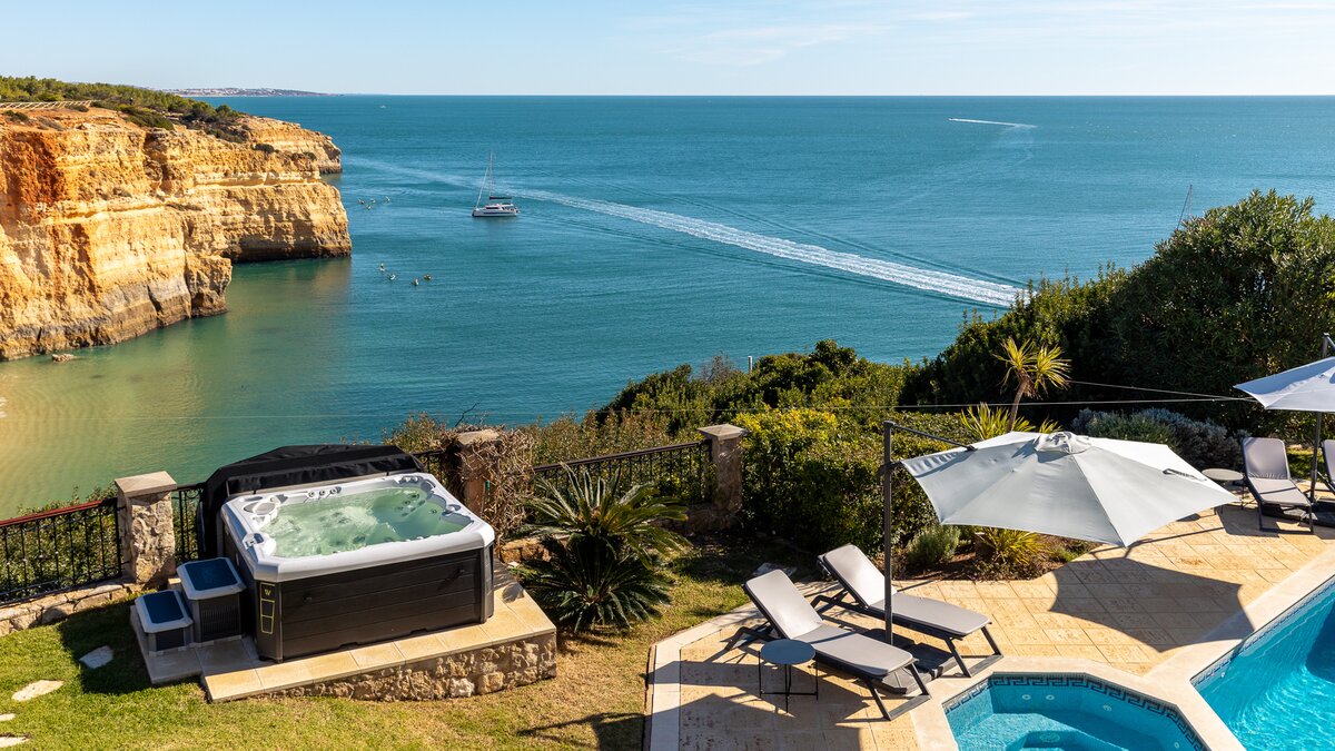 Hoch über Portugals dramatischer Küste von Benagil gelegen, bietet diese moderne Algarve-Villa eine nahtlose Mischung aus Stil, Komfort und atemberaubendem Meerblick.