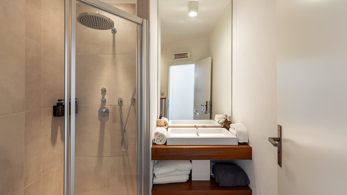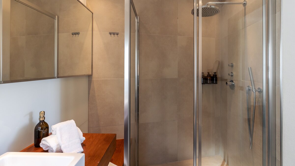 Das Erdgeschoss empfängt die Gäste mit einem luftigen, OFFENER GRUNDRISS Wohn- und Essbereich, wo große Glastüren den Ozean rahmen. Moderne Möbel und neutrale Farbtöne schaffen eine ruhige und anspruchsvolle Atmosphäre, während die voll ausgestattete Küche die Hausmannskost zu einem Vergnügen macht. Dieser Ebene verfügt auch über ein komfortables Schlafzimmer mit direktem Zugang zur Terrasse und ein modernes Duschbad en suite für zusätzlichen Komfort.