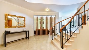 Im Herzen des luxuriösen Resorts Quinta da Lago gelegen, bieten diese gut ausgestatteten Immobilien im Martinhal Quinta Club die Unabhängigkeit eines Villenlebens, aber den Komfort eines Hotelaufenthalts. Denen Villen bieten das Gute aus beiden Welten, Ihren eigenen Zuhause fern von zu Hause, mit einer Vielzahl von Annehmlichkeiten in unmittelbarer Nähe. Diese hellen und geräumigen Immobilien, die zu einem hohen Standard fertiggestellt wurden, bieten einen modernen Raum mit High-End-Möbeln, Klimaanlage, Internetzugang und privatem Tauchbecken, neben einem großen Gemeinschaftspool. Dieser Resort mit umfassendem Service bietet auch eine Rezeption, die eine Reihe von Aktivitäten sowie einen Kinderclub buchen kann. Denen Gäste können auch Golf in Quinta do Lago und anderen Golfplätzen an der Algarve spielen. Die Villen bieten einen sehr sicheren Rahmen für Ihren Urlaub und eignen sich sehr gut für zwei Gruppen, die gemeinsam Urlaub machen möchten, aber auch ihre eigene Unabhängigkeit haben. Es gibt auch Reihenhäuser auf dem gleichen Grundstück.