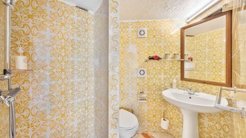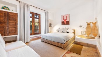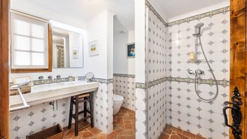 Über eine Außentreppe vom Innenhof gelangen Sie nach oben, um ein ruhiges Wohnzimmer zu finden, in dem Sie lesen können. Ihr Hauptschlafzimmer mit eigenem Bad mit Dusche. Eine private Terrasse bietet einen herrlichen Meerblick.