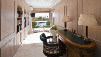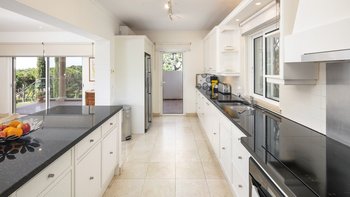 Im Erdgeschoss befindet sich eine große und helle, voll ausgestattete Küche mit einfachem Zugang zum Außengrillbereich. Ein Wohn- und Essbereich mit großen Fenstertüren führt auf die erste Poolterrasse, ein perfekter Ort, um Zeit mit Ihren Gästen zu verbringen. Eines Büro, ein Ankleideraum, zwei Doppelschlafzimmer mit eigenem Bad und ein Hauptschlafzimmer mit eigenem Zugang zur Poolterrasse befinden sich ebenfalls auf dieser Etage.