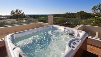 Im Außenbereich können die Gäste die zwei Pools, den Whirlpool und das Türkische Bad nutzen. Auf der Dachterrasse befinden sich ein Essbereich im Freien und ein Loungebereich mit weichen Sitzgelegenheiten, die den perfekten Ort bieten, um den Sonnenuntergang zu genießen.